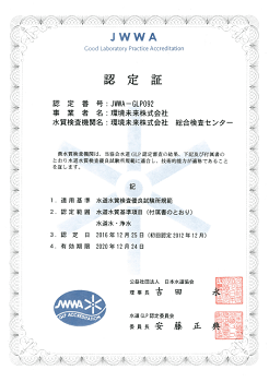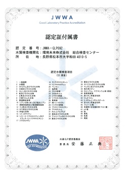 環境未来-GLP認定書(PDF)環境未来-GLP認定書付属書(PDF)