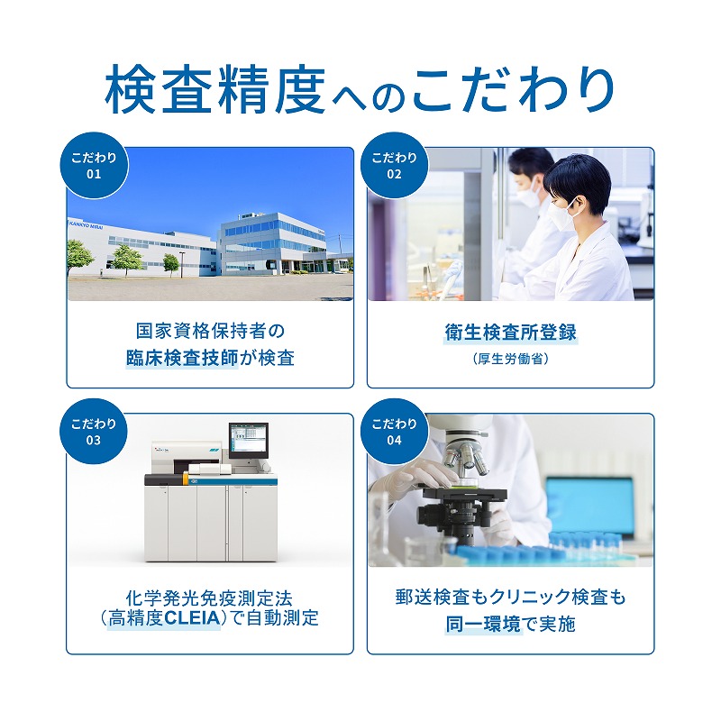A. 病院でも使用されている検査方法・機器を用いて検査を行っており、信頼性の高い結果をご提供しています。