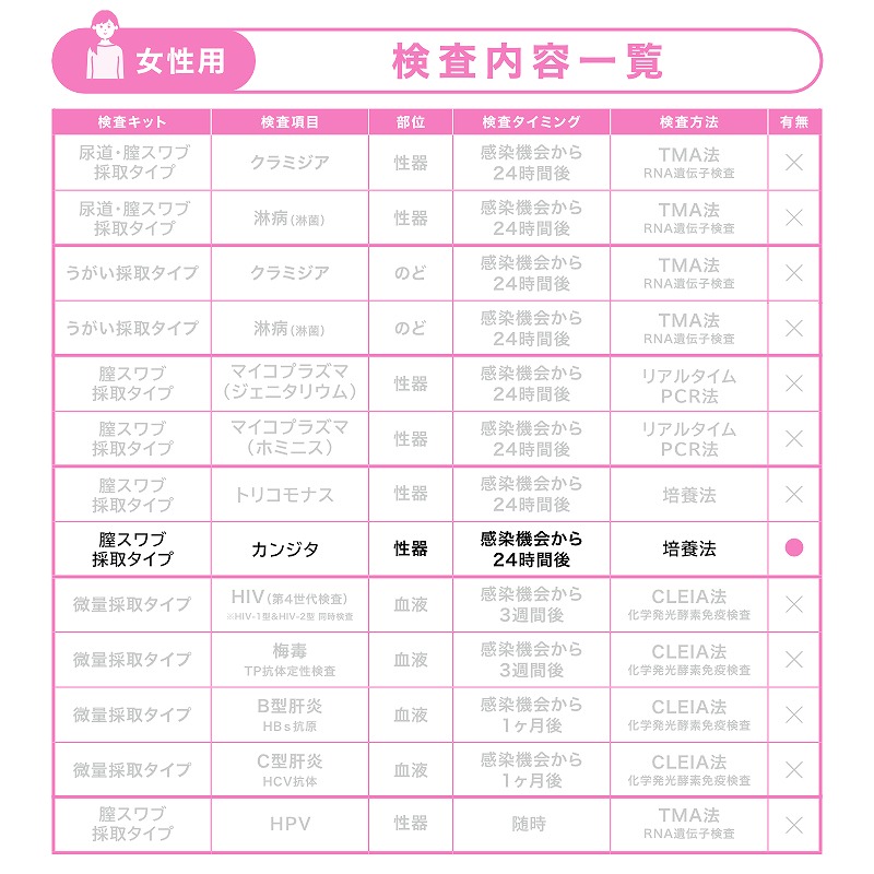 | 商品名 | ピンポイントチェック カンジタ<女性> |
