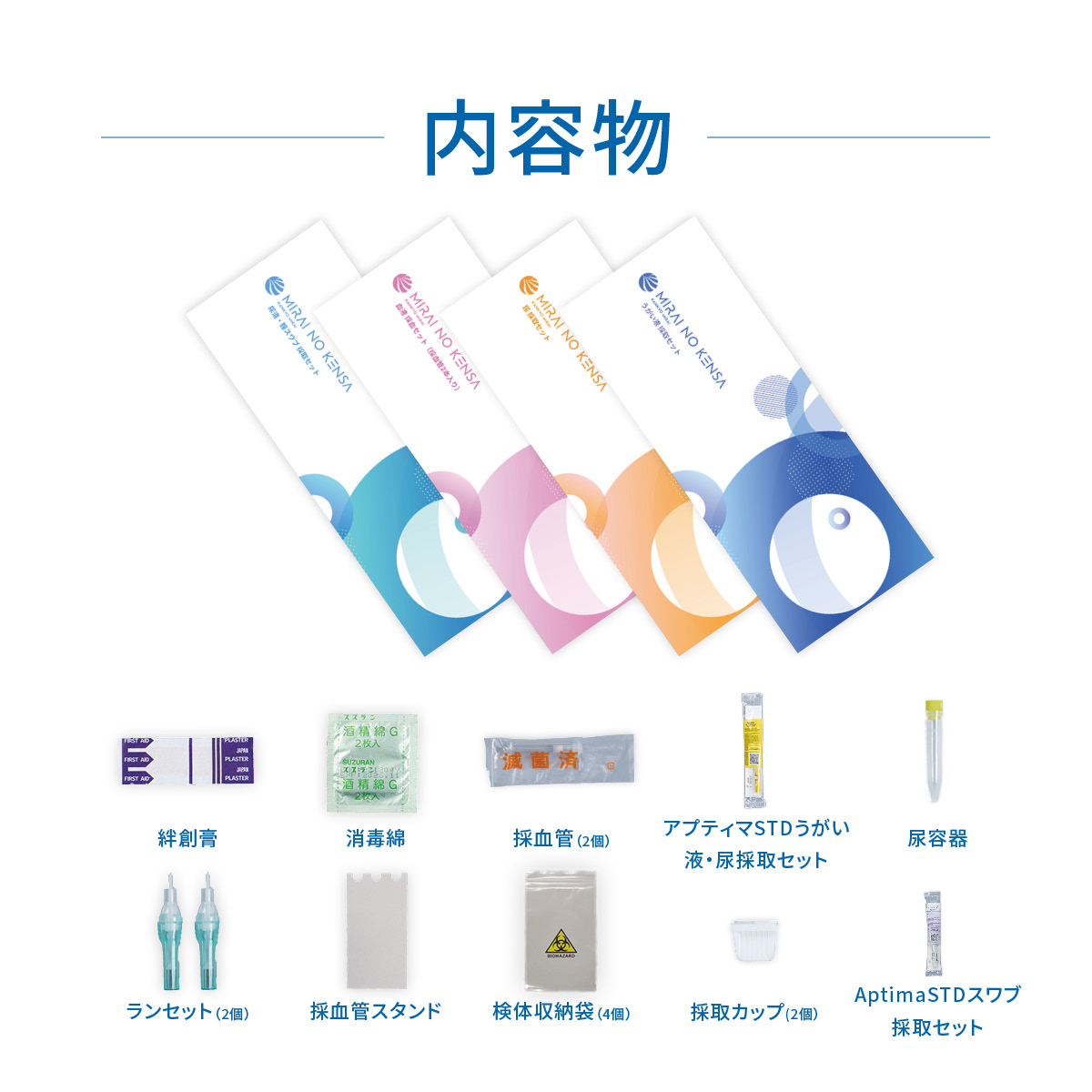 | 採取方法 | 尿道スワブ採取・うがい採取・指先採血 |
