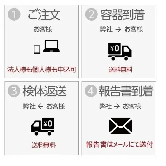 ※提出先や自治体により検査項目が異なる場合がございますので、あらかじめ提出先、管轄の公的機関にご確認ください。